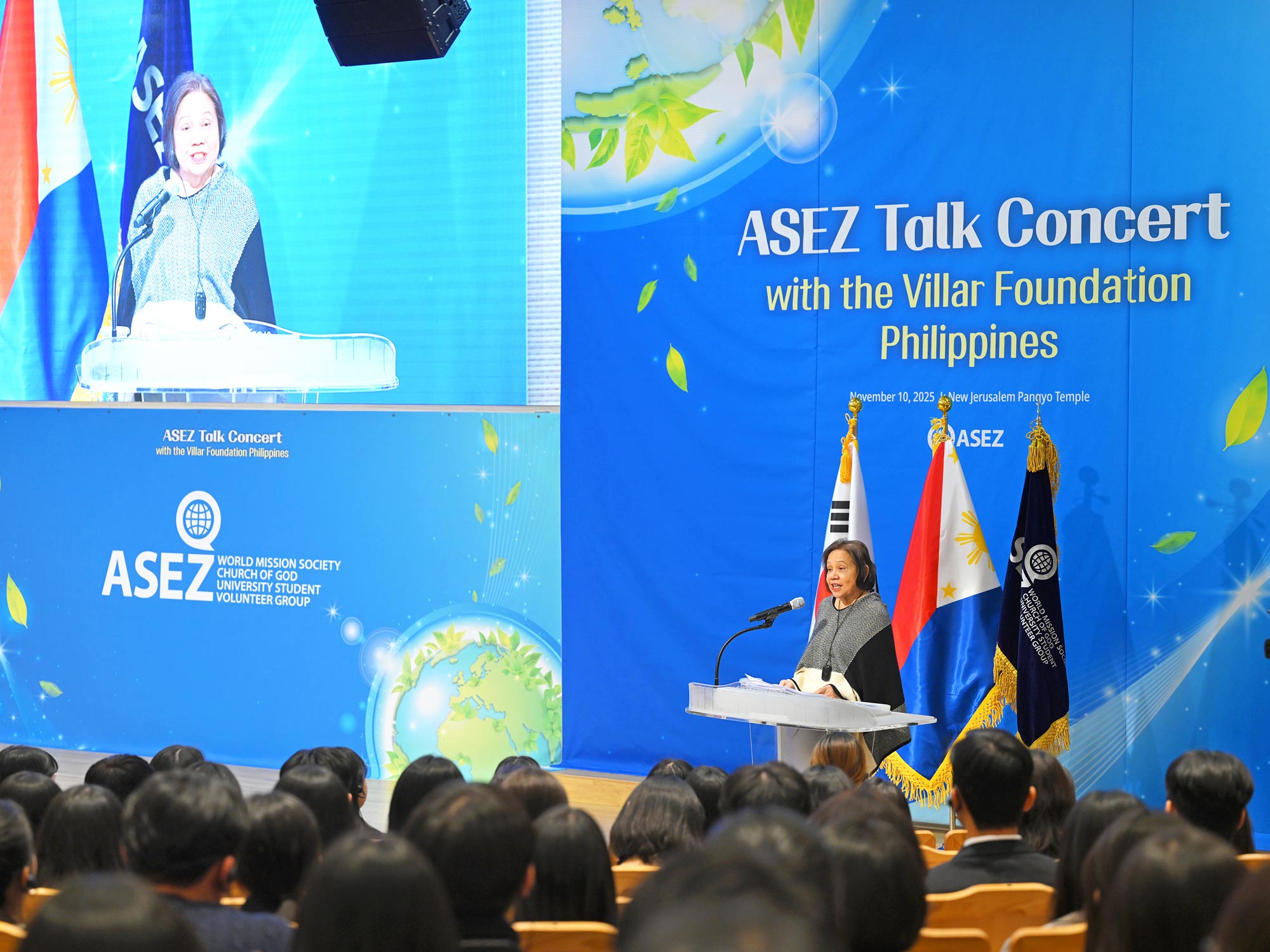 Drawing on her legislative work during her time as a senator and the Villar Foundation’s wide-ranging welfare projects, Ms. Villar shared practical knowledge and on-the-ground experiences with approximately 560 university students, exploring together the direction the younger generation can take. Having consistently supported ASEZ activities—such as attending ASEZ environmental and crime-prevention forums in the Philippines—she joined the event to engage directly with Korean young adults.